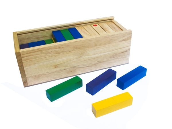 A classic wooden block set with neatly stored colorful pieces in a sturdy wooden box. Perfect for stacking, building, and learning through play, it encourages creativity and hands-on exploration.