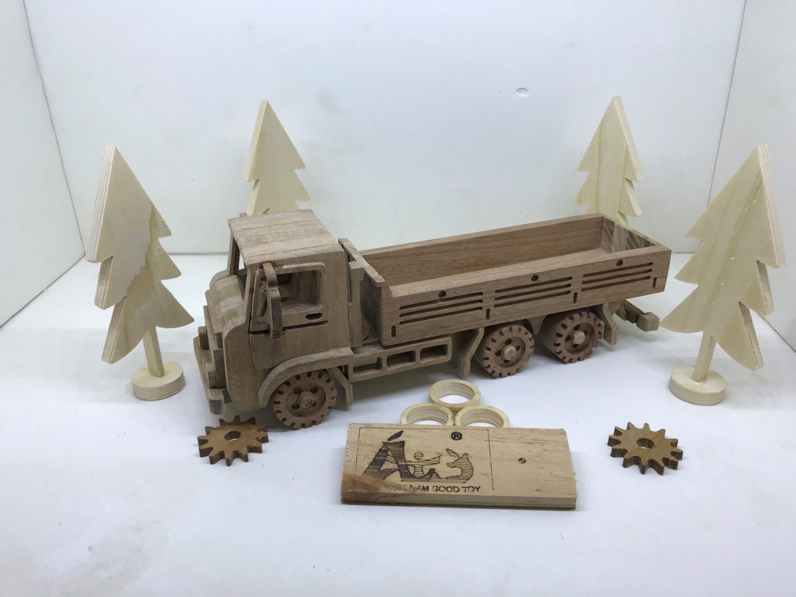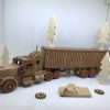 A handcrafted wooden flatbed truck with a realistic design and working wheels. Built from solid wood, it’s both a fun toy for kids and a durable display piece for collectors.