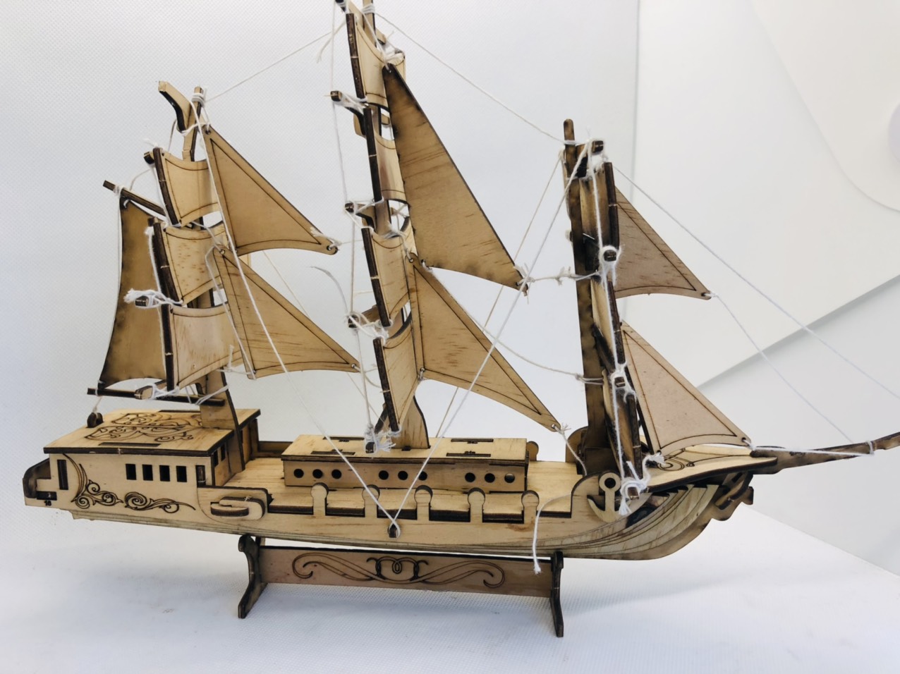 A detailed wooden sailboat model kit for hobbyists and collectors. With pre-cut parts and realistic rigging, this kit lets you build a classic sailing ship that makes a stunning display piece.